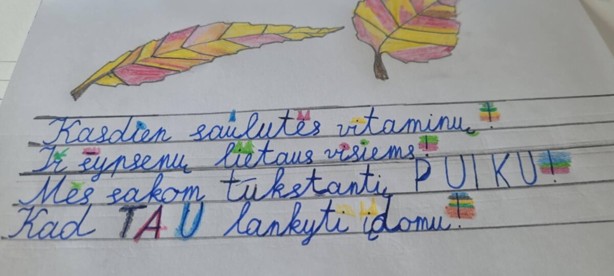 Šia proga 2d ir 3c klasės mokiniai su mokytojomis Reda ir Dalia, susibūrė iniciatyvai "Rudens spindulėlis TAU". Juk niūrėjančio rudens dienomis šviesos ar šilumos spindulėlį gali skleisti ne tik saulė. O ir tokia puiki proga pasitaikė! Vaikų pagaminti sveikinimai, nuoširdūs palinkėjimai tapo staigmena Zarasų trečiojo amžiaus universiteto klausytojams. Juos perdavėme Zarasų TAU vadovei N.Matušovai, kuri pažadėjo visus sveikinimus perduoti adresatams. Tačiau tuo iniciatyva dar nesibaigė - mūsų laukia susitikimas su Zarasų TAU atstovais.