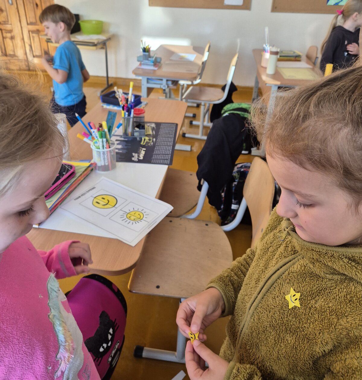 Mažieji mokinukai dalijosi mintimis, kas jiems sukelia šypseną: vieni sakė, kad juos pradžiugina žaidimai su draugais, staigmenos, suaugusiųjų pagalba ir palaikymas, laimėjimai, kiti – laikas baseine, pasivaikščiojimai su šeima bei augintiniu, o dar kiti – skanūs ledai ir pica.