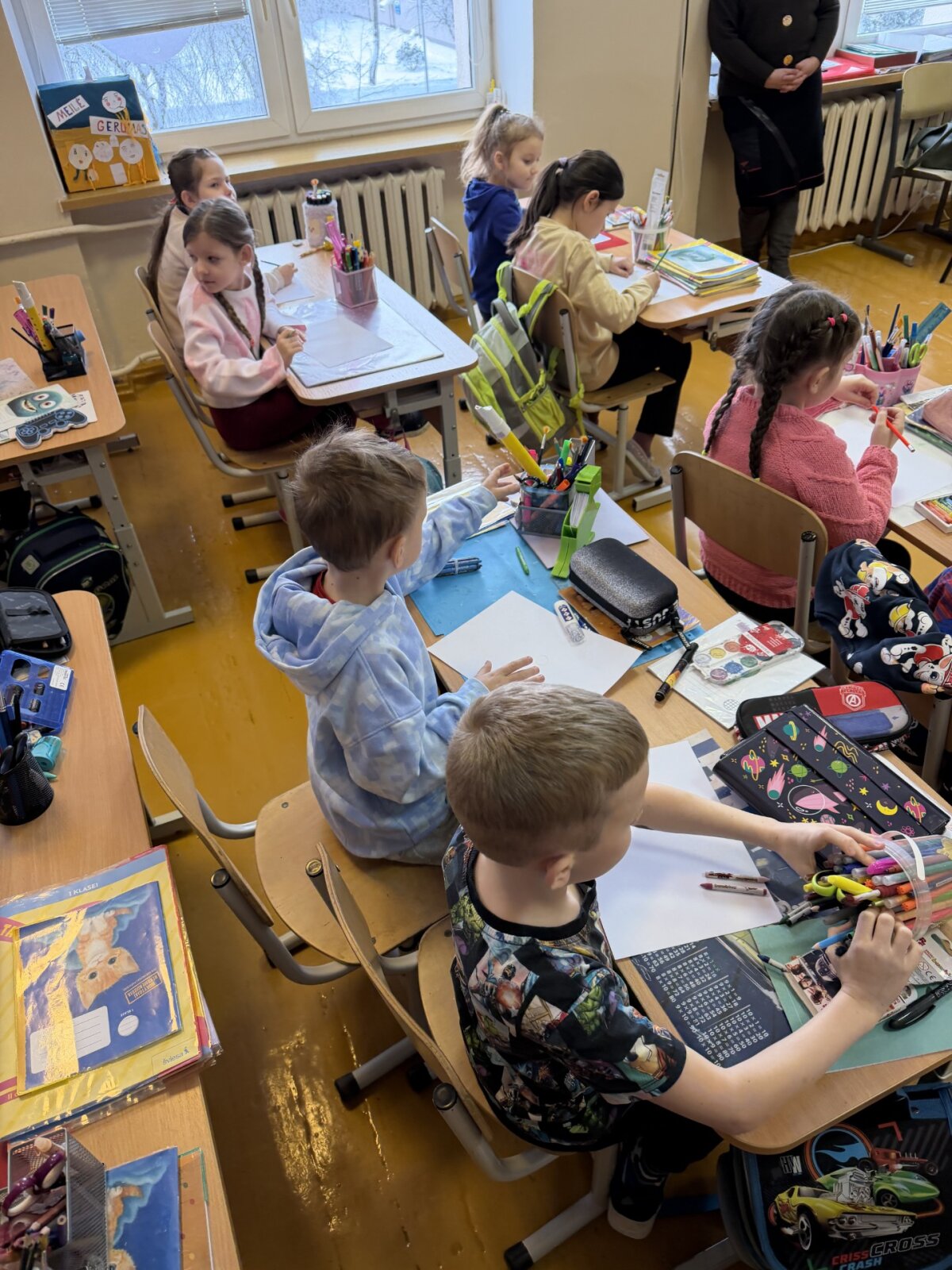 Pabaigai, visi galėjome pasidžiaugti spalvingais mokinių piešiniais, kuriuose kiekvienas iš jų pavaizdavo labiausiai jiems imponuojančią savo ateities profesiją.