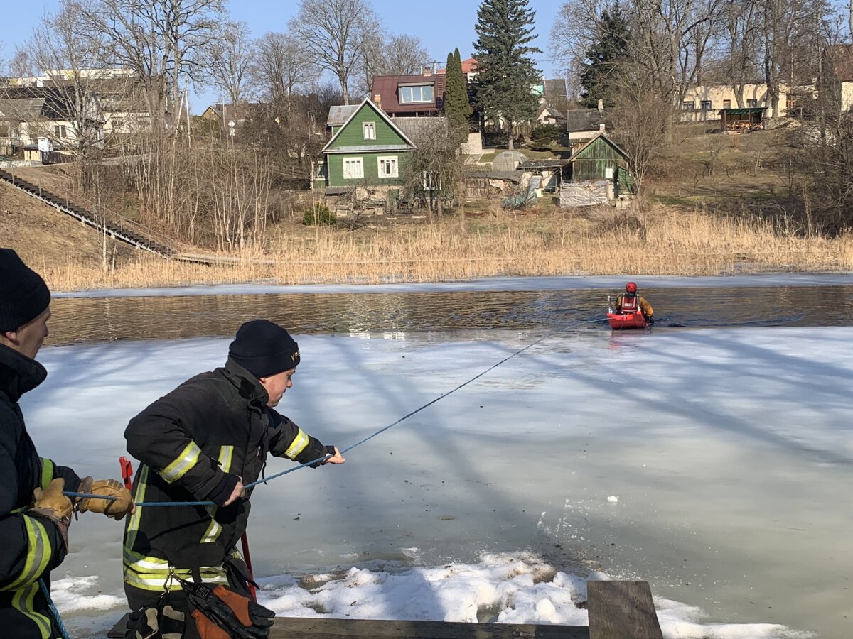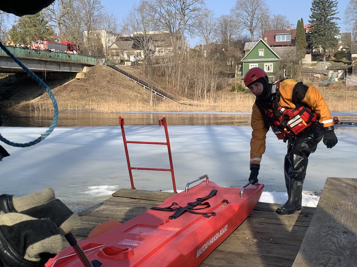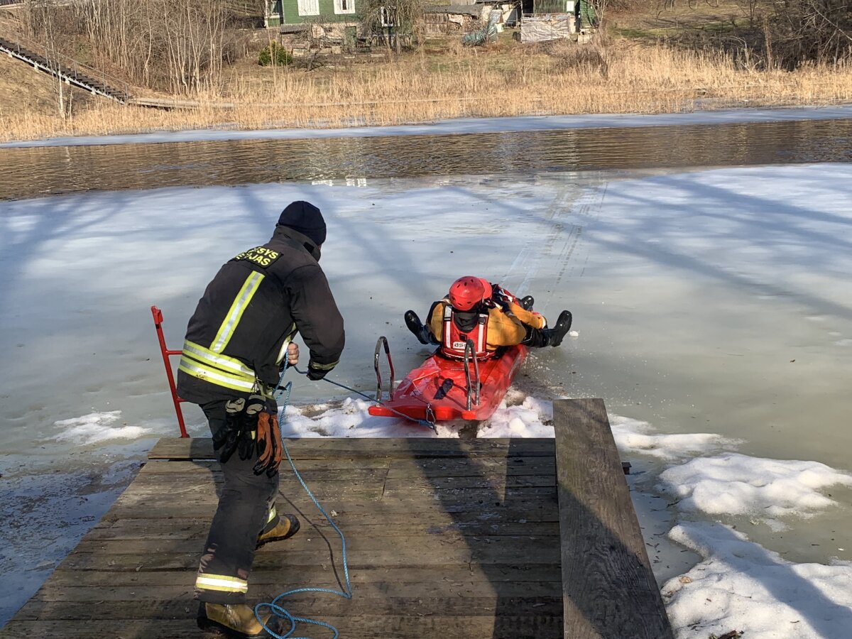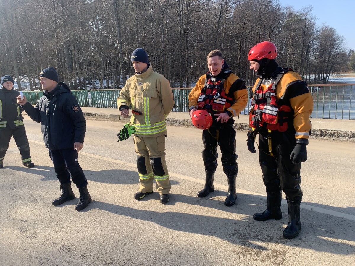 Ugniagesiai paaiškino, koks ledo storis laikomas saugiu, ir kodėl vien tik išvaizda pasitikėti negalima. Mokiniai taip pat pamatė, kaip gelbėjami įlūžę žmonės naudojant specialią gelbėjimo įrangą.