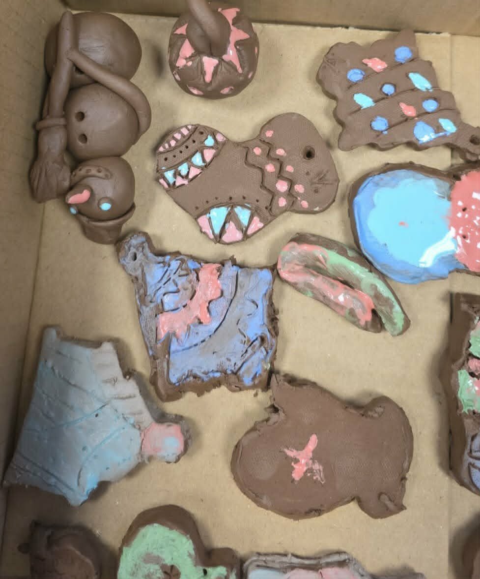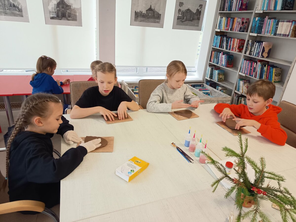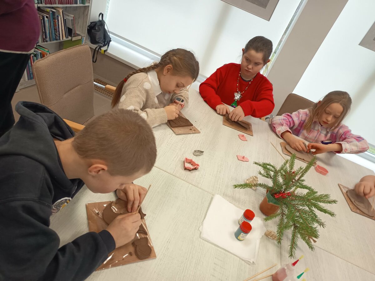 Po pažintinės dalies prasidėjo kūrybinė edukacija. Kiekvienas vaikas gavo gabalėlį molio ir pasigamino ne tik kalėdinių žaisliukų, bet ir savo rankomis galėjo nusilipdyti kažką unikalaus ! Užbaigę lipdymo darbą, savo kūrinį galėjo papuošti spalvomis, ornamentais ar raštais.