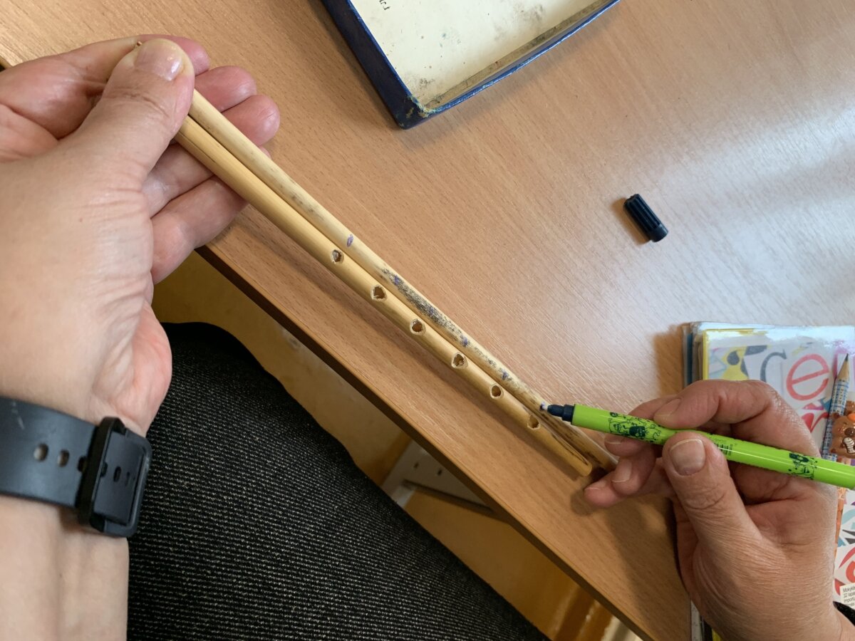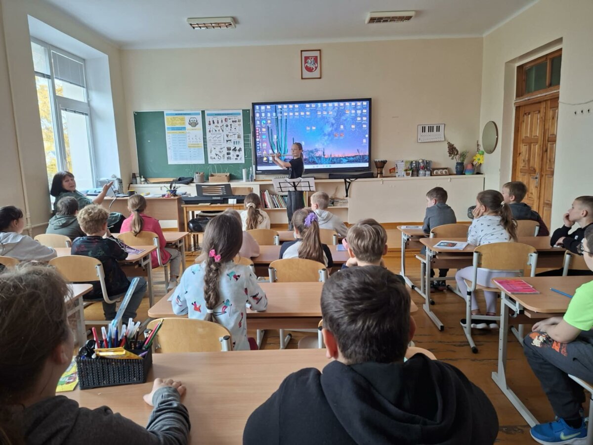 Vėliau mokiniai kartu su į Zarasų Fausto Latėno meno mokyklos mokytoja J. Tumėnienė susipažino su pučiamaisiais instrumentais ir fleitos sandara. Vaikai klausėsi profesionalaus grojimo, lygino jį su tradiciniais rankų darbo instrumentais ir sužinojo, kaip garsas išgaunamas pučiant orą į angą ir sukuriant vibraciją. Šis susitikimas padėjo vaikams geriau suprasti, kaip dirba muzikantai ir kokių žinių reikia jų profesijai.