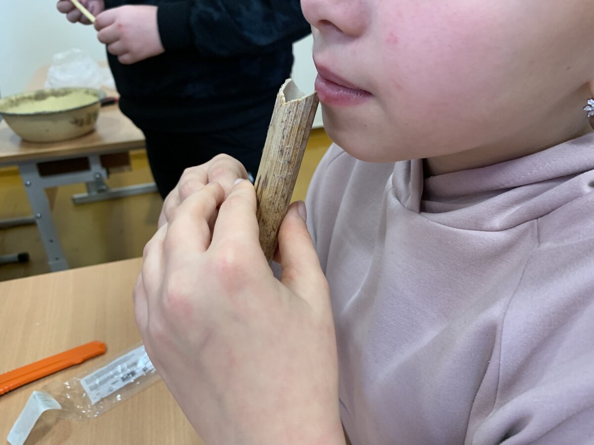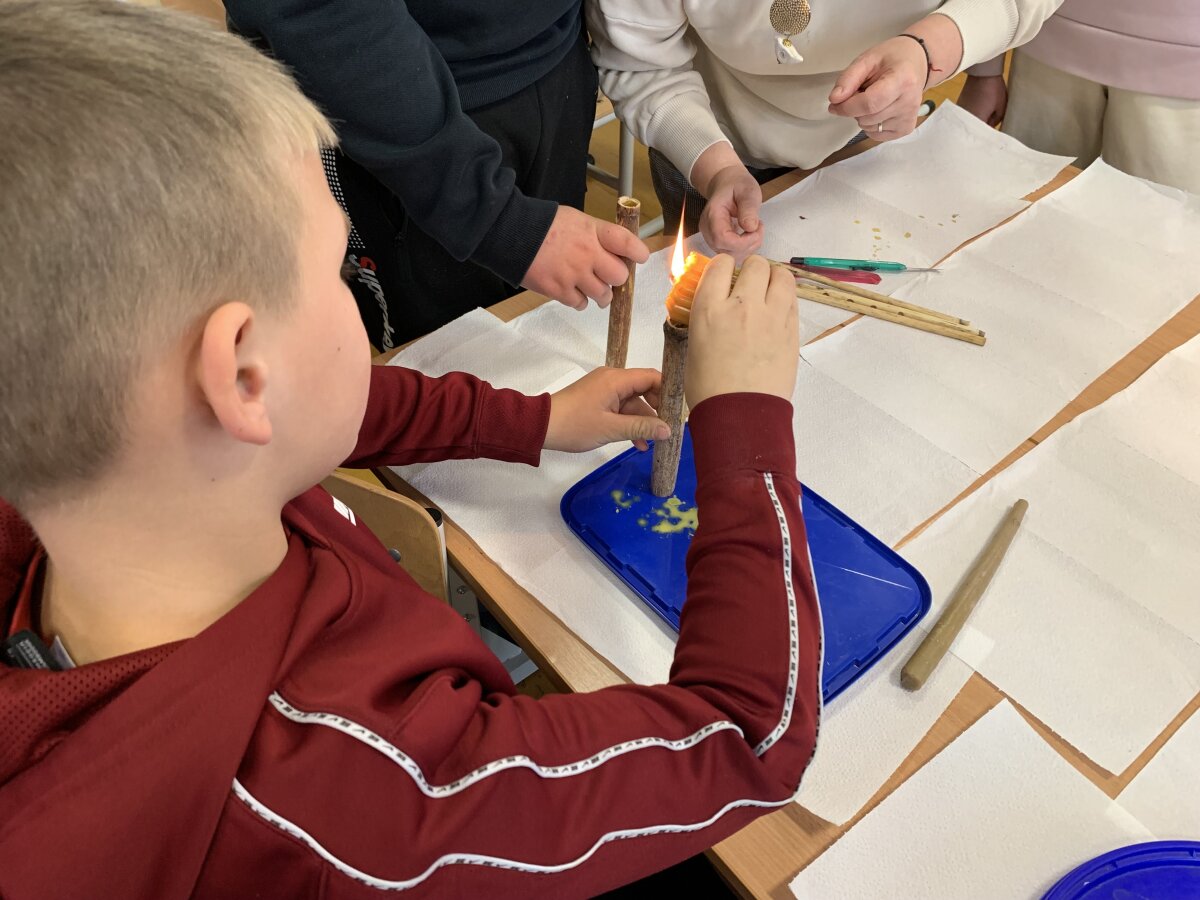 Sugrįžę į klasę, mokiniai pasinėrė į kūrybą. Klausydami pasakojimų apie senovines birbynes, dūdeles, švilpynes ir skudučius, jie mokėsi saugiai dirbti su įrankiais ir gamino savo instrumentus iš nendrių ar builio stiebų. Vaikai pjaustė, derino ilgį, dekoravo gaminius ir bandė išgauti pirmuosius garsus. Nors ne visiems pavyko iškart pagroti tiksliai, kiekvienas mokinys patyrė atradimo džiaugsmą ir pajautė, kaip smagu kurti pačiam.
