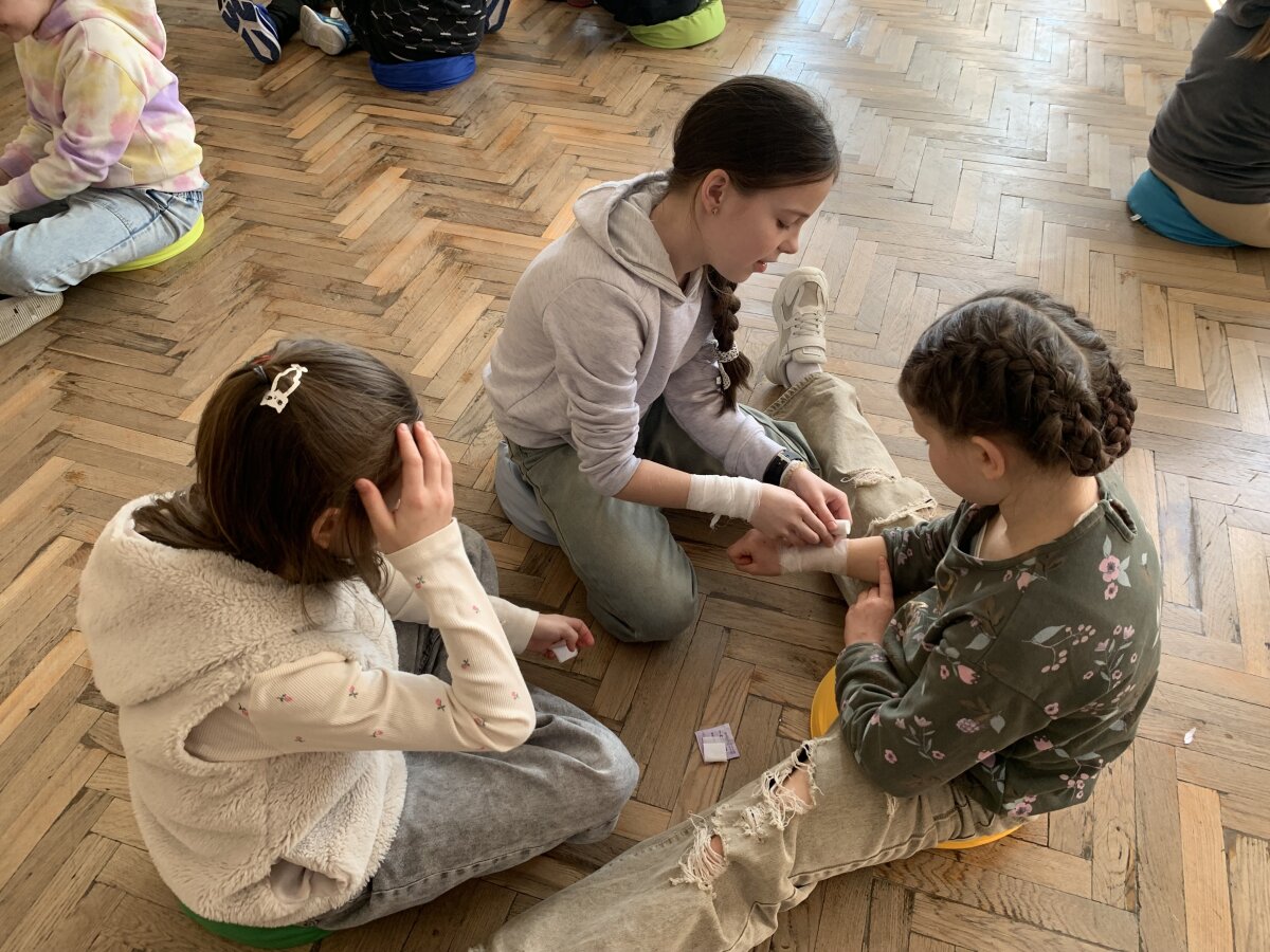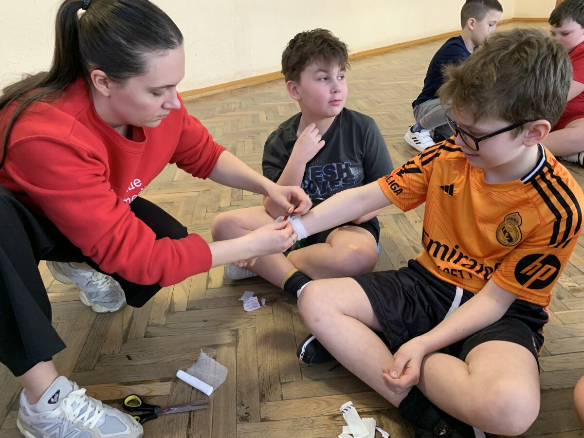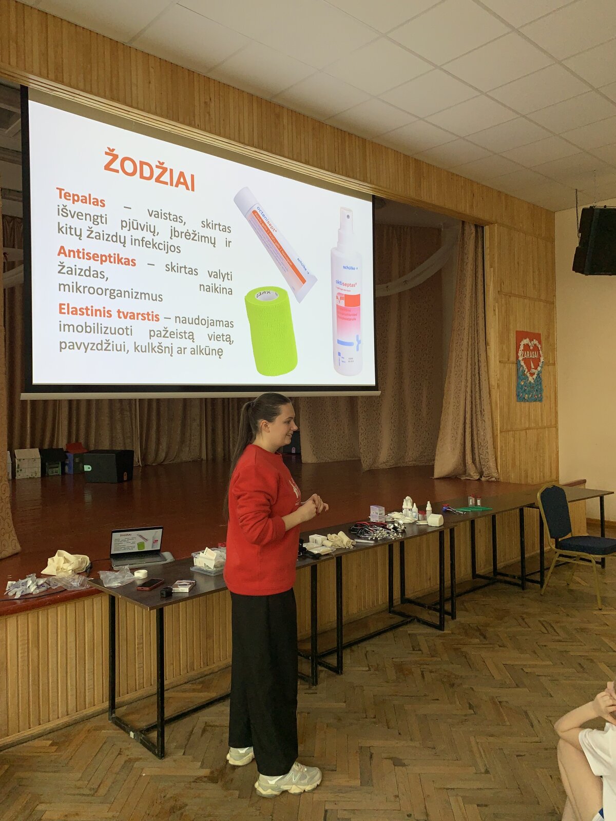 Didelis dėmesys skirtas praktinei veiklai. Mokiniai turėjo galimybę patys išbandyti pirmosios pagalbos veiksmus: mokėsi tvarstyti žaizdas, klausytis širdies darbo, susipažino su erkių šalinimo principais, taip pat aptarė, kaip tinkamai reaguoti į sporto metu patiriamas traumas.