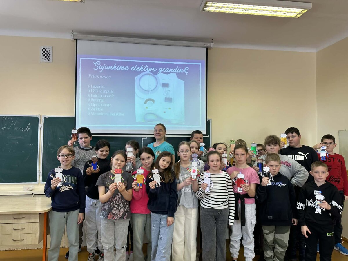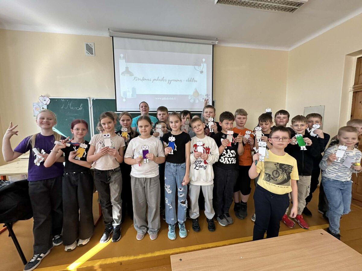 Edukacijoje apie elektrą mokiniai susipažino su apšvietimo evoliucija – nuo senovinių šviesos šaltinių iki šiuolaikinių LED technologijų. Buvo analizuojama, kaip keitėsi žmonių gyvenimas atsiradus elektrai, kokie pagrindiniai elektros grandinės elementai ir kaip jie veikia. Praktinėje dalyje mokiniai kūrė veikiančius modelius – šviečiančius įrenginius, kuriuose patys sujungė elektros grandinę ir įžiebė LED lemputę.