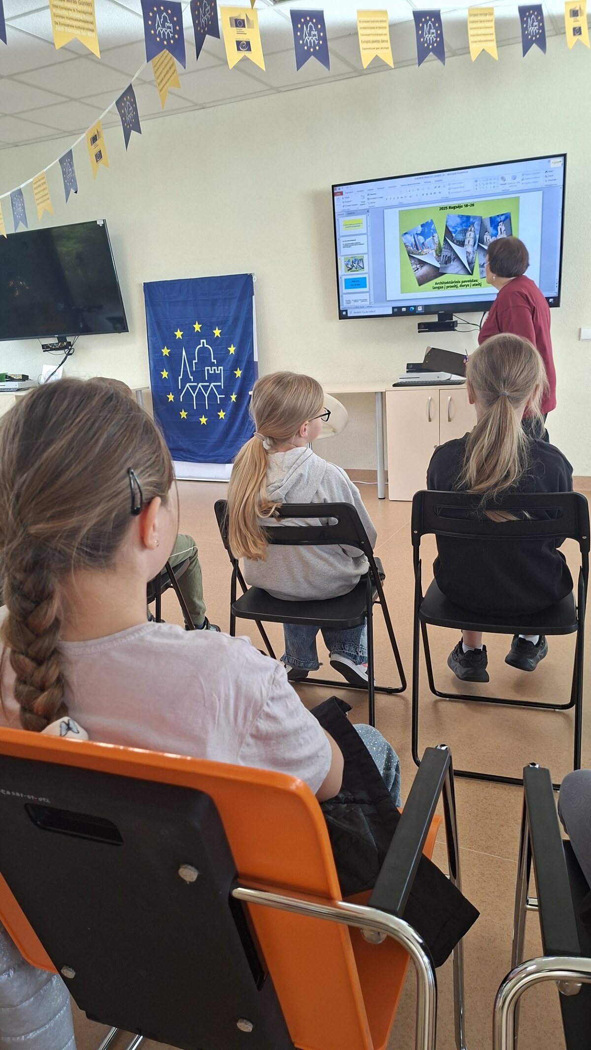 Pirmiausia mokiniai bibliotekoje, stebėdami specialiai parengtą vizualizaciją, sužinojo, kas yra paveldas, kodėl jis svarbus ir kokių rūšių paveldo būna. Diskusijos metu vaikai dalijosi mintimis apie išsaugotas senovines vietas ir jų vertę.