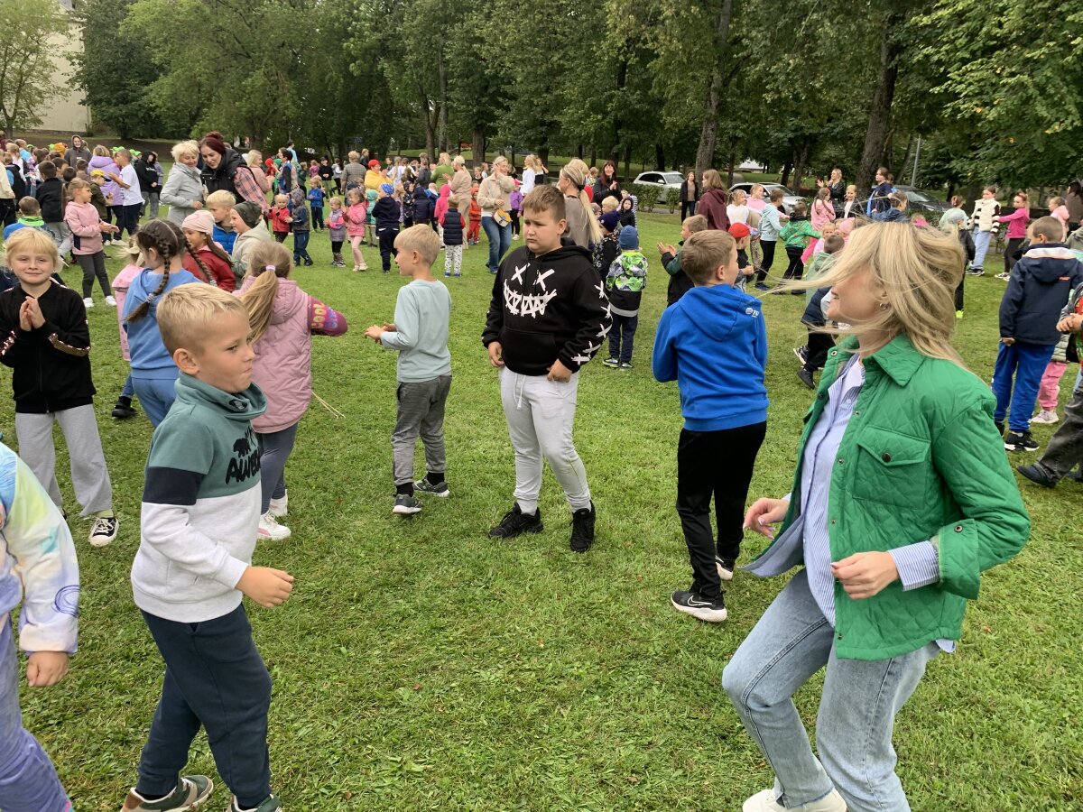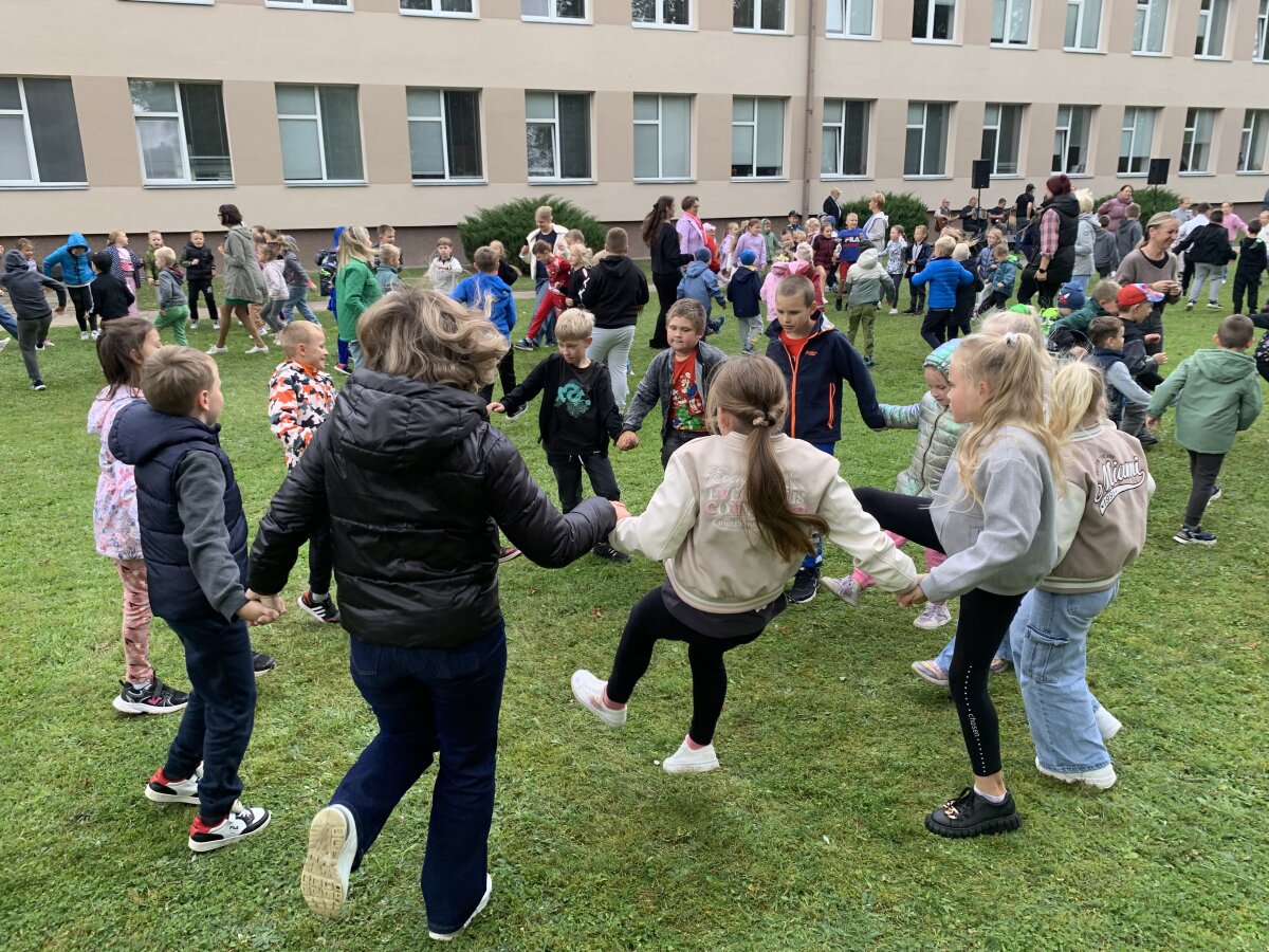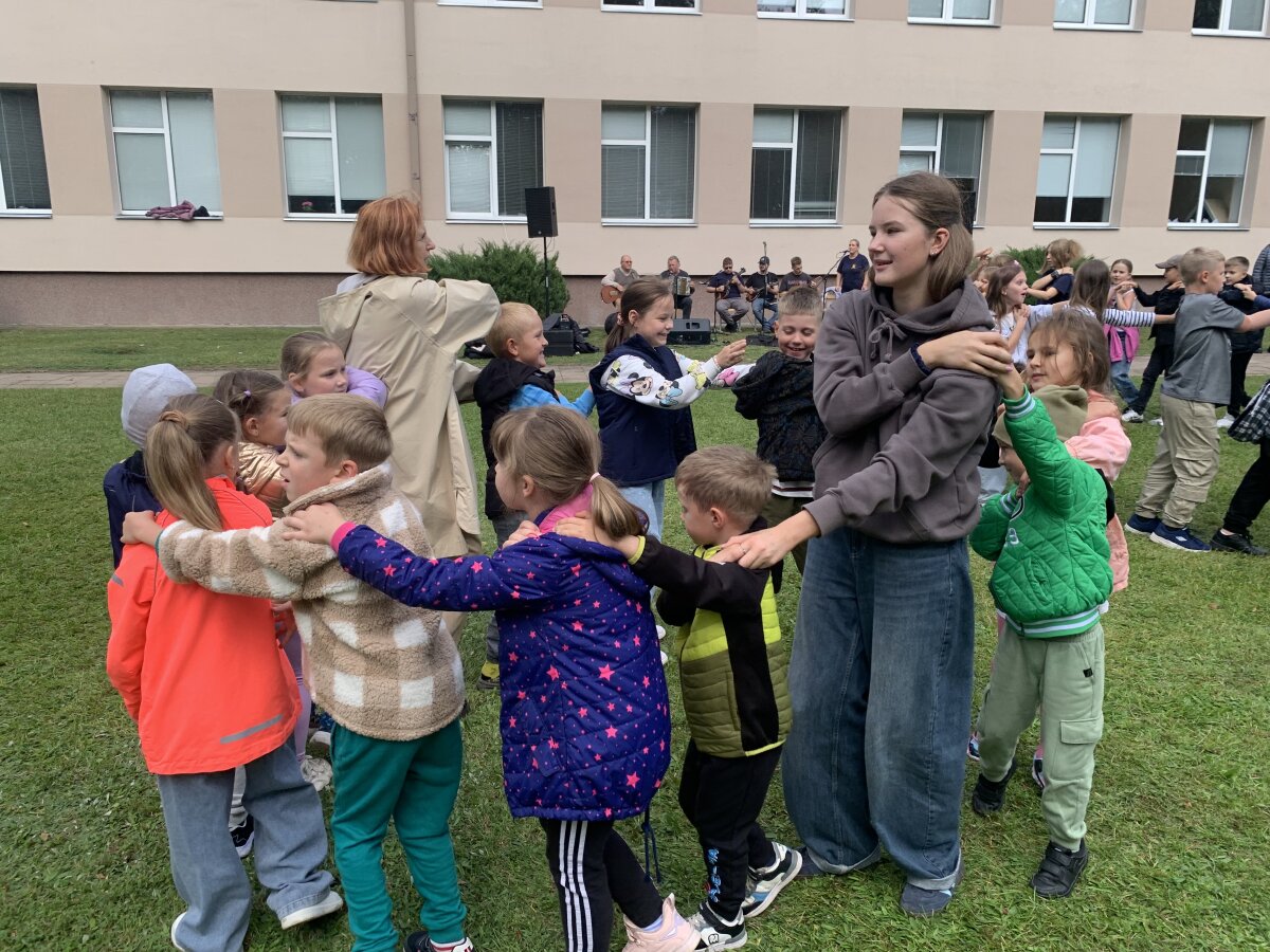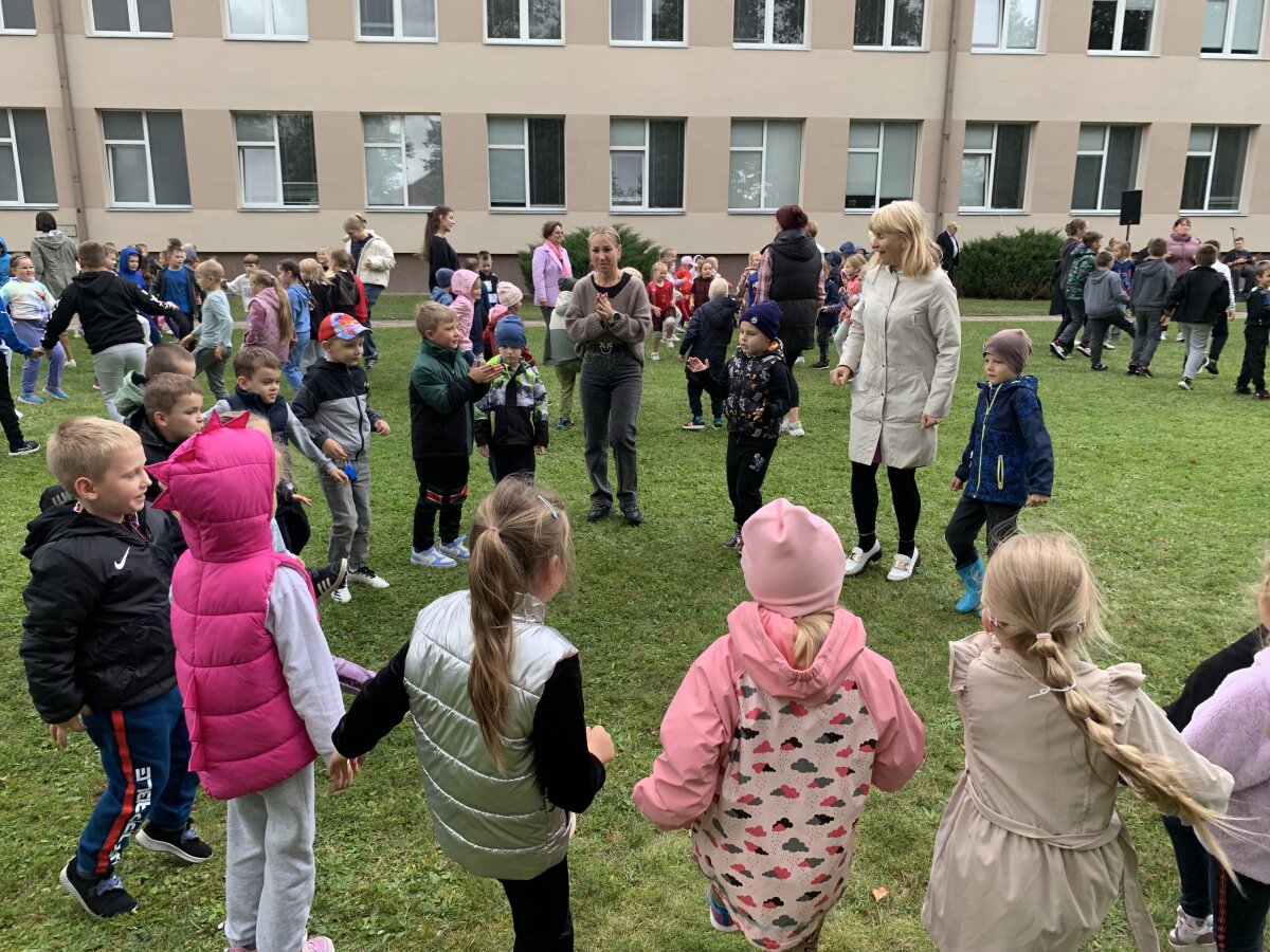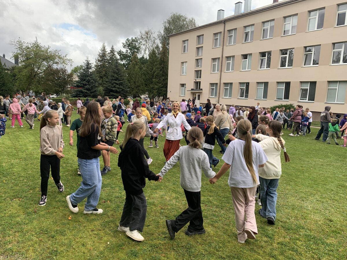 Nors dangų retkarčiais gaubė debesys, mūsų šventės nuotaika buvo tokia šviesi, kad apšvietė visą kiemą! Prie mokyklos į šokio sūkurį sukosi daugybė ratelių – nuo smalsių pirmokėlių iki vyriausių klasių mokinių, nuo mokytojų iki administracijos darbuotojų. Visi drąsiai jungėsi prie bendro ritmo ir mėgavosi judesio džiaugsmu.