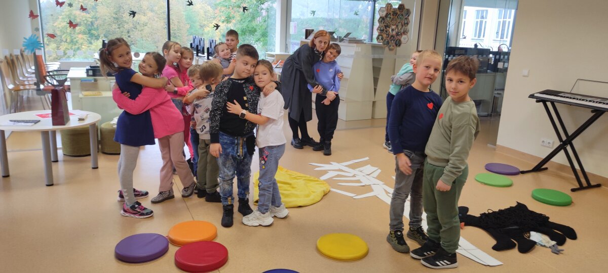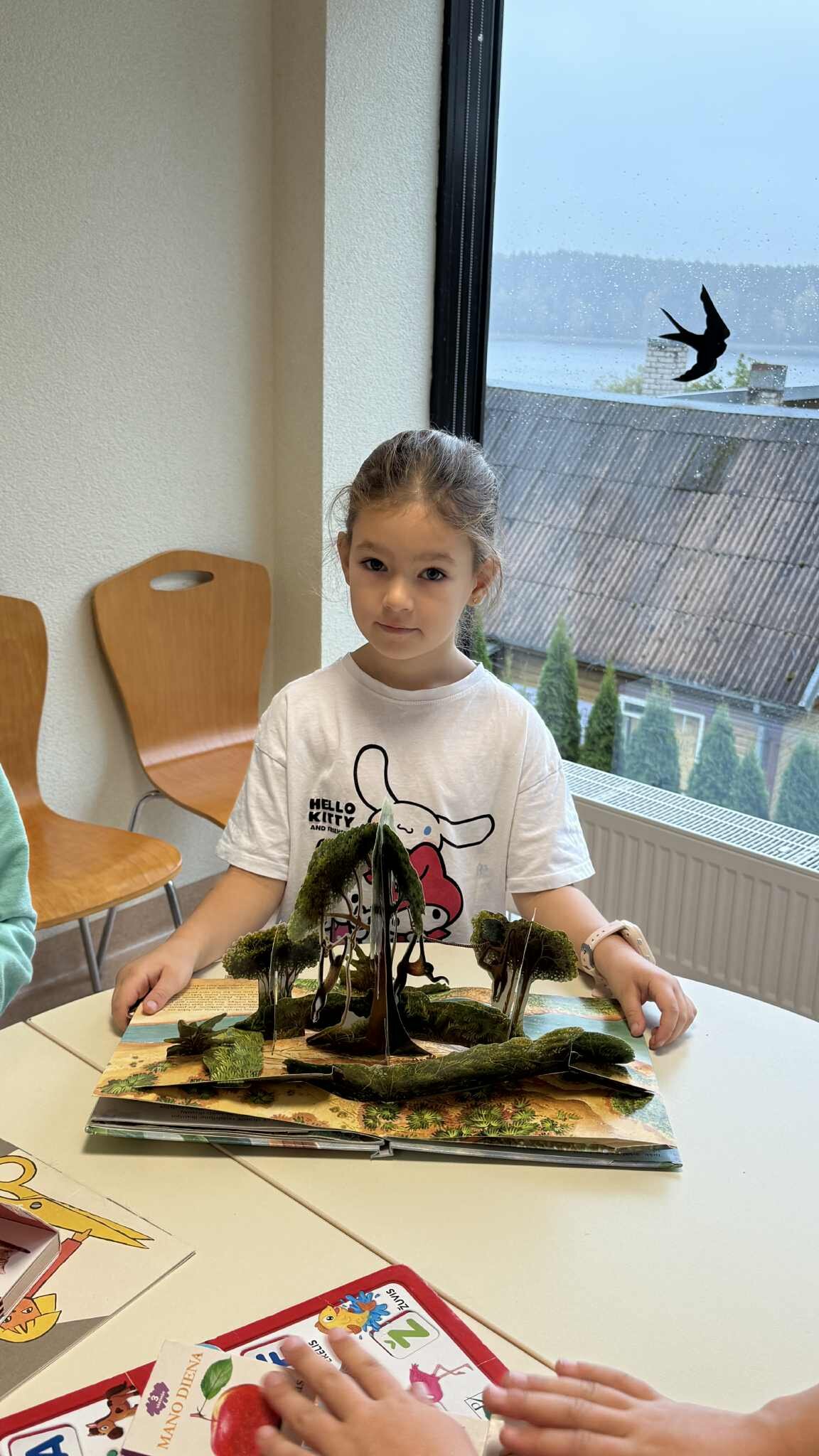 Kurdami istoriją tyliajai knygai „(Ne) vienas“, pirmokai lavino savo vaizduotę, mokėsi rišliai pasakoti, turtino žodyną bei patyrė kūrybos ir bendrystės džiaugsmą. Aktyviausi dalyviai – Kamila ir Vakaris – buvo apdovanoti simbolinėmis dovanėlėmis.