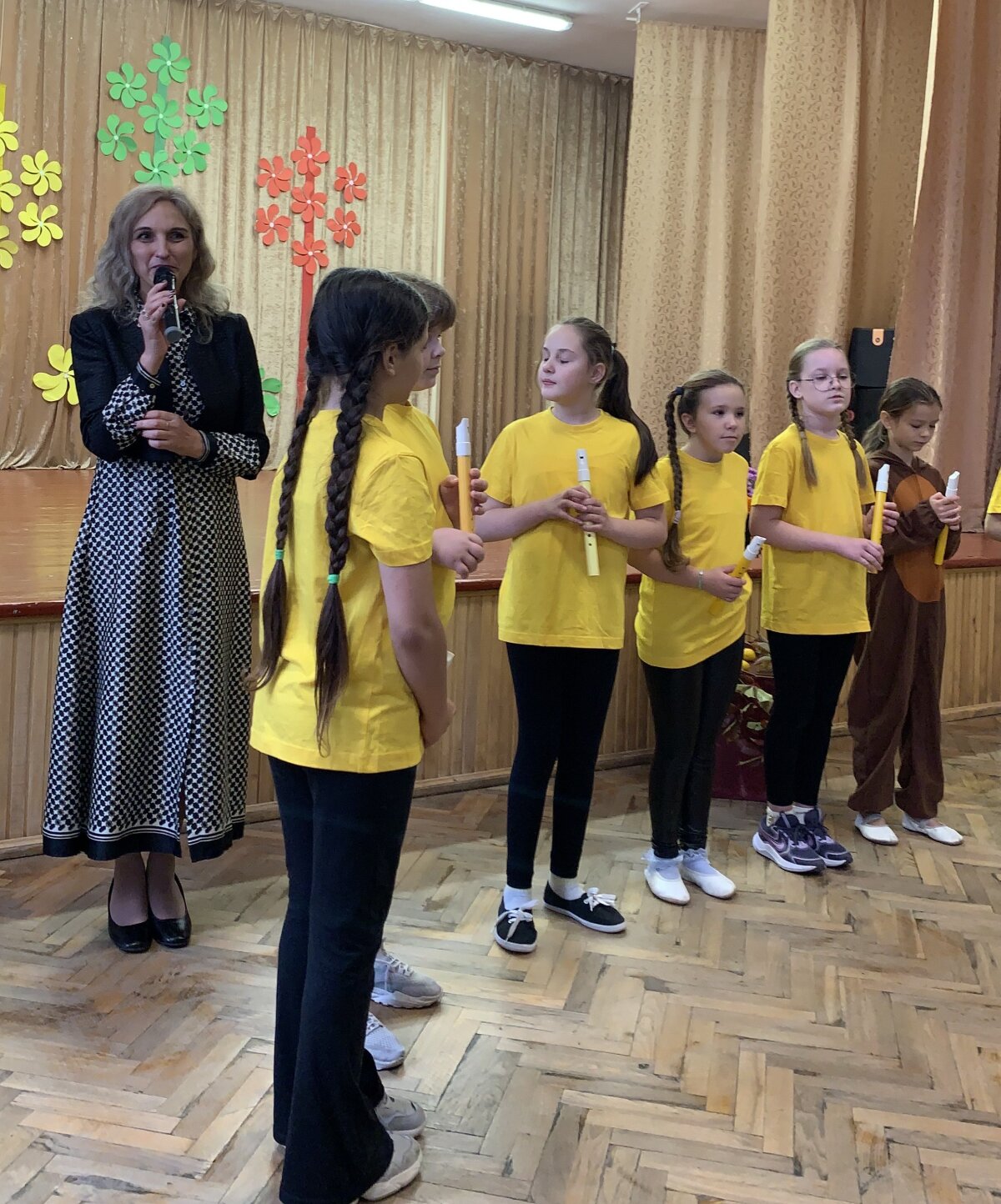 Muzikos mokytojos Dianos režisuotame koncerte pasirodymų pynė džiugino žiūrovus. Pirmiausia skambėjo mokinių atliekama daina „Vis tekina, vis tekina“. Vėliau dūdelių melodijomis nuskambėjo kūrinys „Meilė džiugina“, o scenoje sukosi nuotaikingas šokis „Ella ir Bella“.
