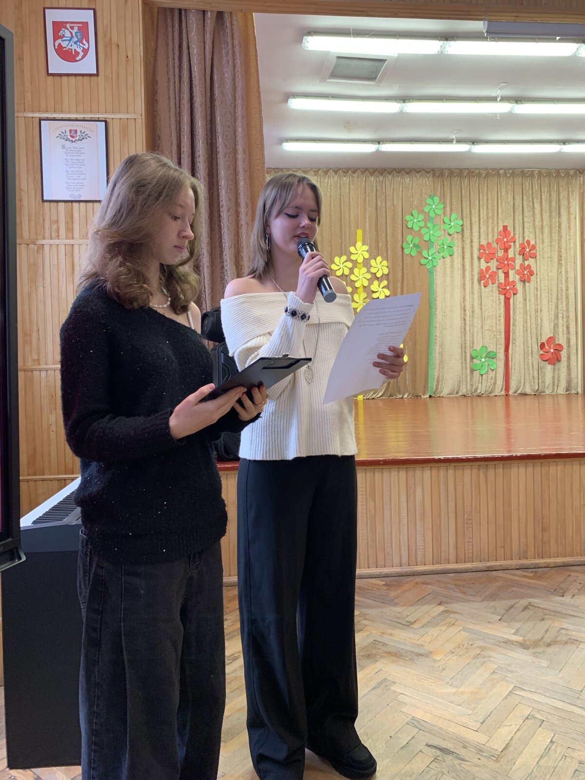 Žiūrovų širdis virpino ir mažųjų, ir vyresniųjų mokinių pasirodymai. Ne viena mokytoja nubraukė džiaugsmo ašarą, matydama scenoje savo mažuosius, o gimnazistų dainos taip pat sulaukė gausių plojimų. Progimnazistė Solvita padainavo „Kai lyja už lango lietus“, gimnazistė Marija atliko „Nuogas ruduo“, Ieva – dainą lenkų kalba, Goda – „Mylimos akys“, kita Marija – „Skinsiu raudoną rožę“, o Oskaras – „Pienė“. Visi kūriniai buvo dovanojami mokytojams – iš širdies ir su meile.