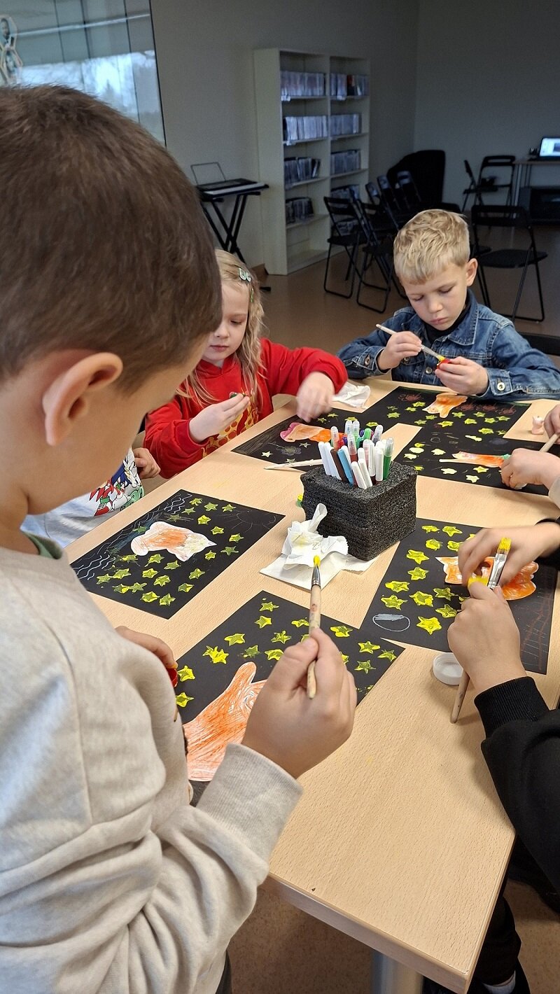 Kūrybinės veiklos metu vaikai spalvino katiną Horacijų arba kūrė savo katinų piešinius, laukiančius žvaigždžių lietaus. Ant popieriaus pasipylė spindintys žvaigždžių atspaudai – atrodė, lyg žvaigždės iš tiesų būtų nusileidusios į vaikų piešinius. Visi buvo laimingi – ir katinai, ir vaikai.