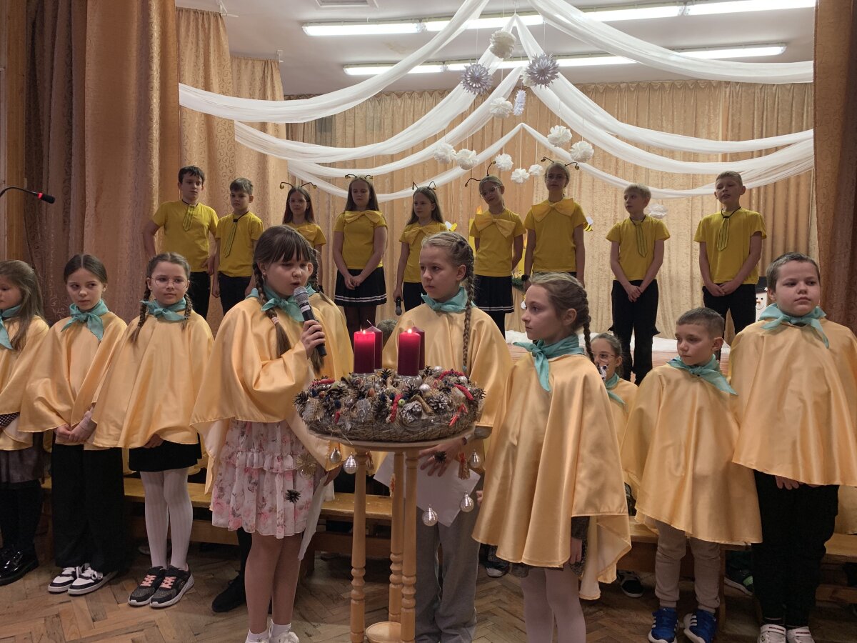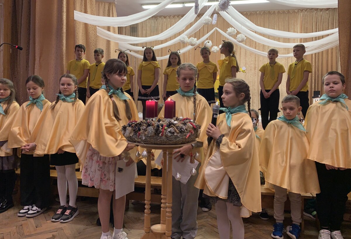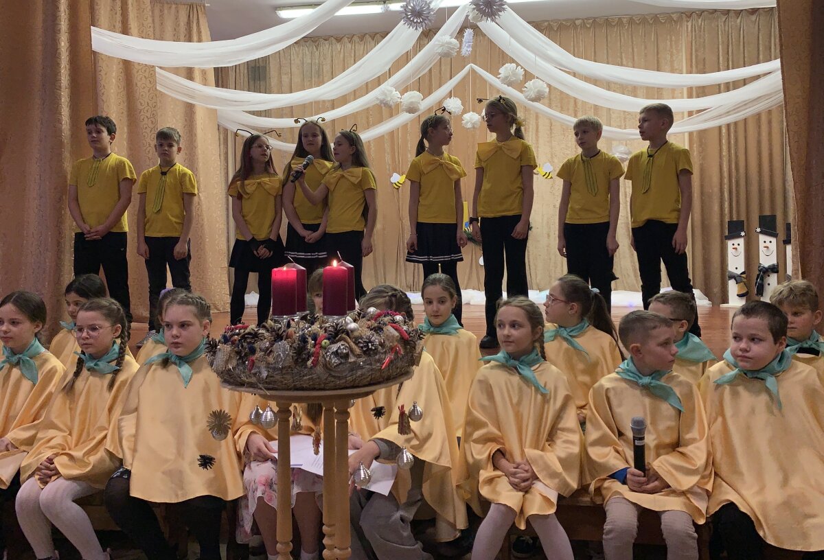Ketvirtų klasių mokiniai parengė Advento programą apie darbščias biteles, vaško žvakes Advento vainike, apie bitelių šventumą ir mirtį, jų suneštą saldų medutį.