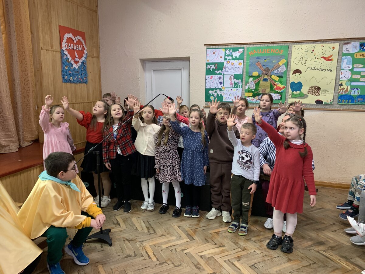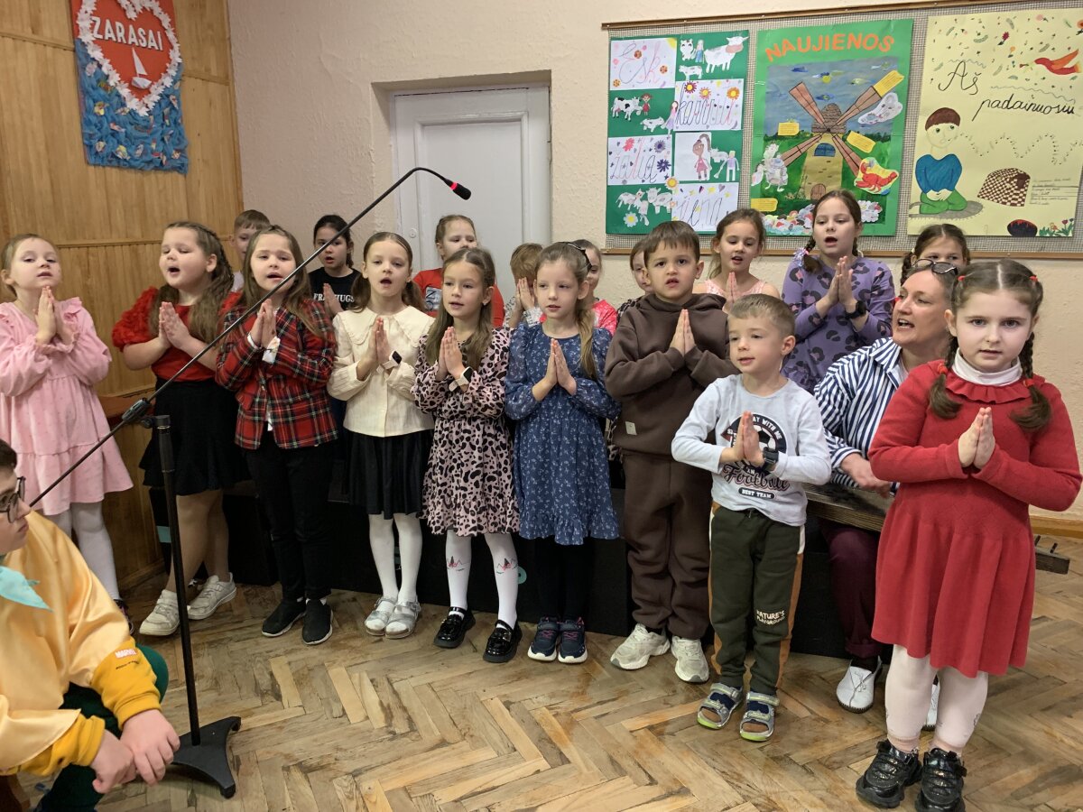 Tarp mokinių žodžių skambėjo choro „Šypsenėlės“ giesmės „Ryto maldoj“, „Iš tavao rankos“, „Kūčių giesmelė“. Taip pat žiūrovus pradžiugino nuotaikingas „bitučių“ šokis.