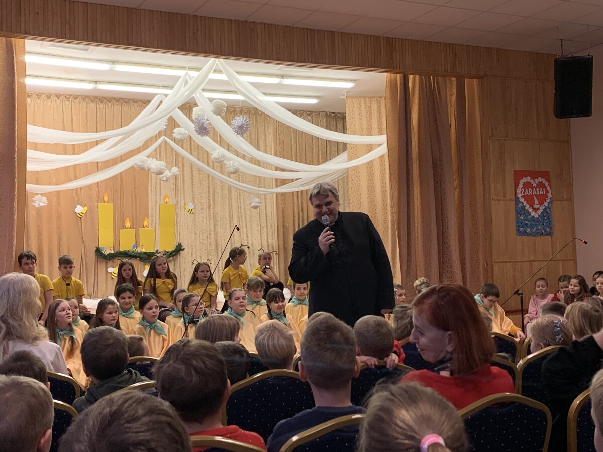 Advento popietėje taip pat dalyvavo kunigas Vydas Juškėnas iš Zarasų Švč. Mergelės Marijos Ėmimo į dangų parapijos. Jis bendruomenei linkėjo šviesaus ir prasmingo laukimo, atvirų širdžių ir ramybės. Renginio pabaigoje žodį tarė ir mokyklos direktorė Daiva Šileikienė, pabrėžusi bendrystės, susitelkimo ir nuoširdaus pasiruošimo Kalėdoms svarbą.
