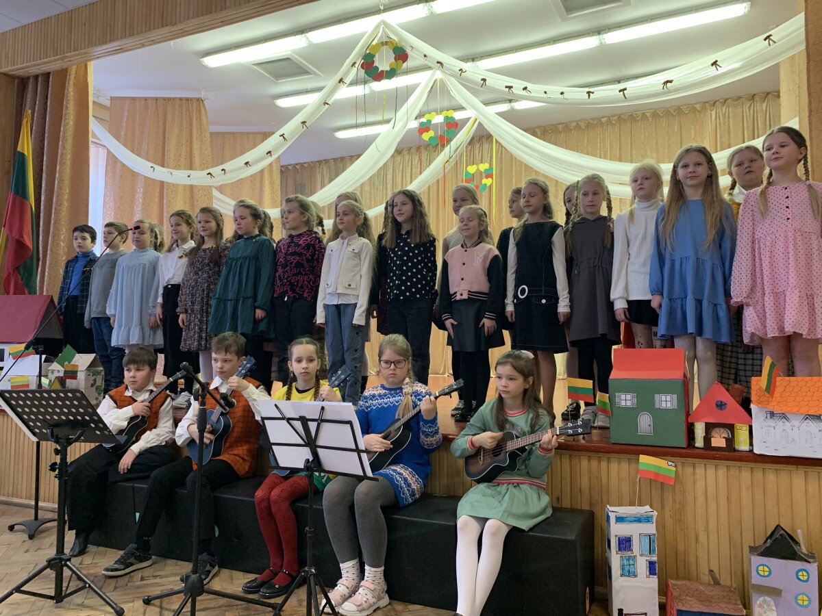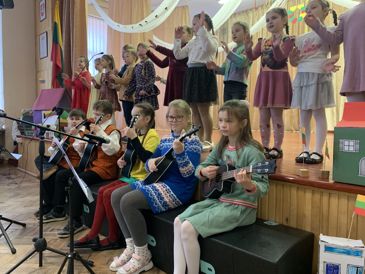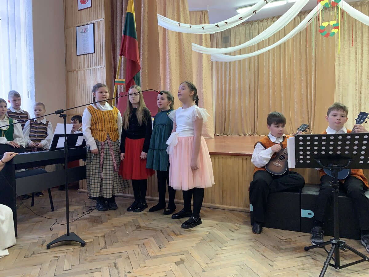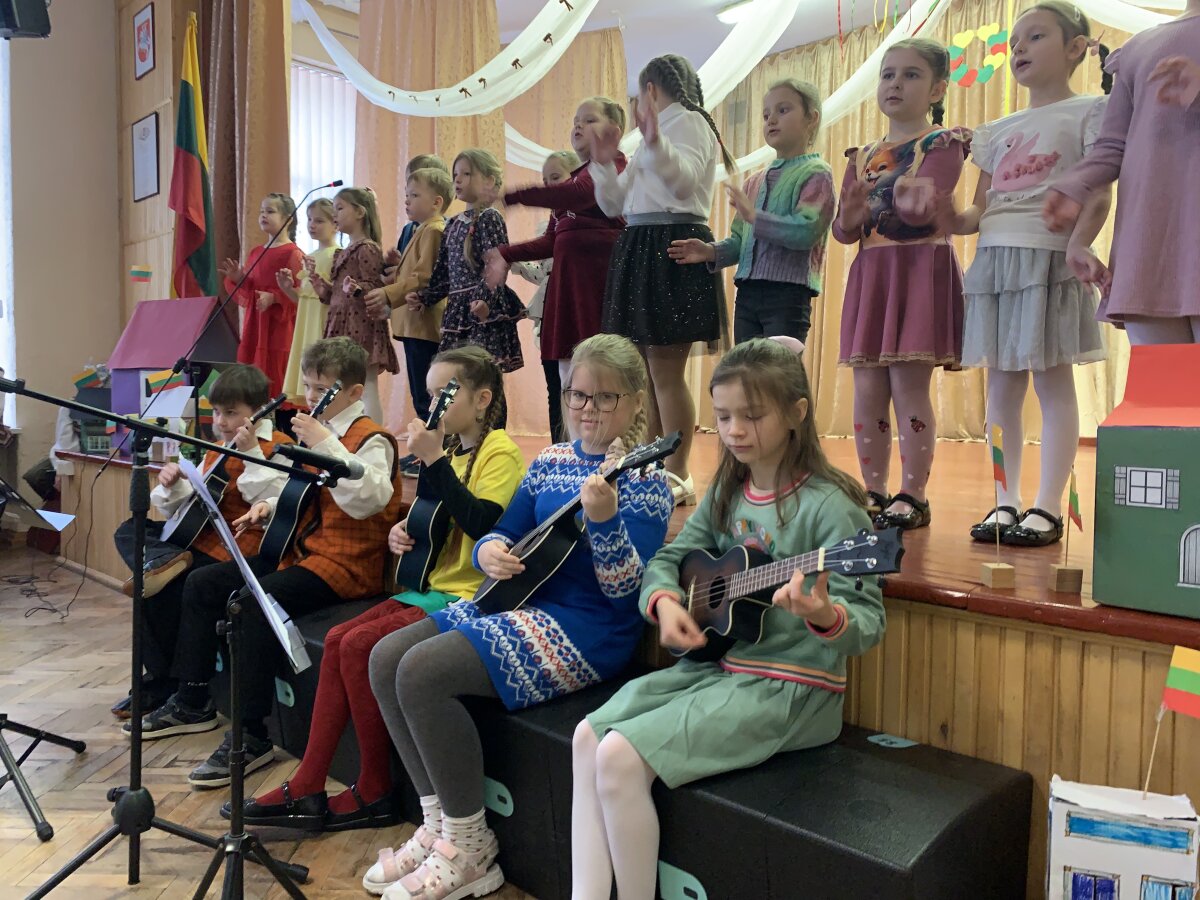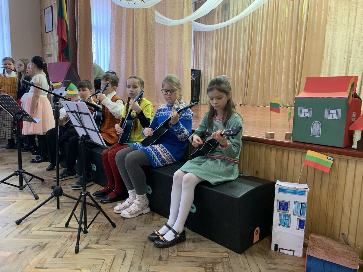 Ypatingai džiugino ir 3–4 klasių mokinių pasirodymas – jie dainavo dainą „Kokia nuostabi“ ir grojo ukulelėmis. 4c klasės mokiniai sušoko šokį „Malūnininkas“, o renginį iškilmingai užbaigė bendra daina „Mano Lietuva“, kurią 3–4 klasių mokiniai atliko su ukulelėmis.