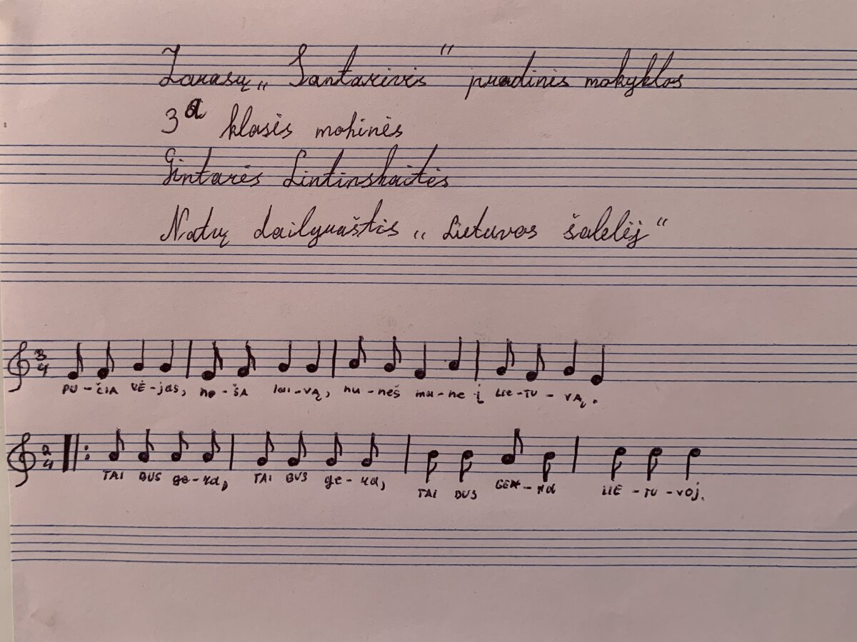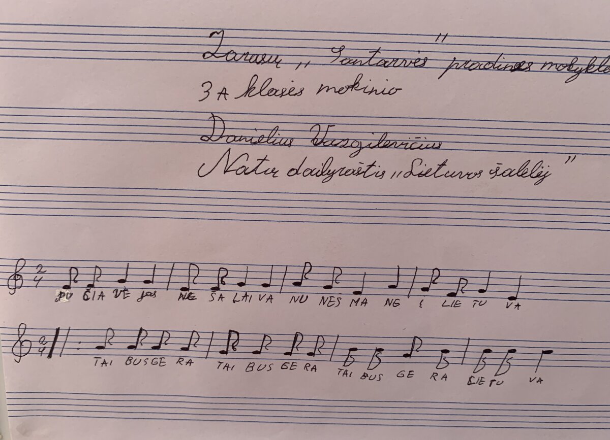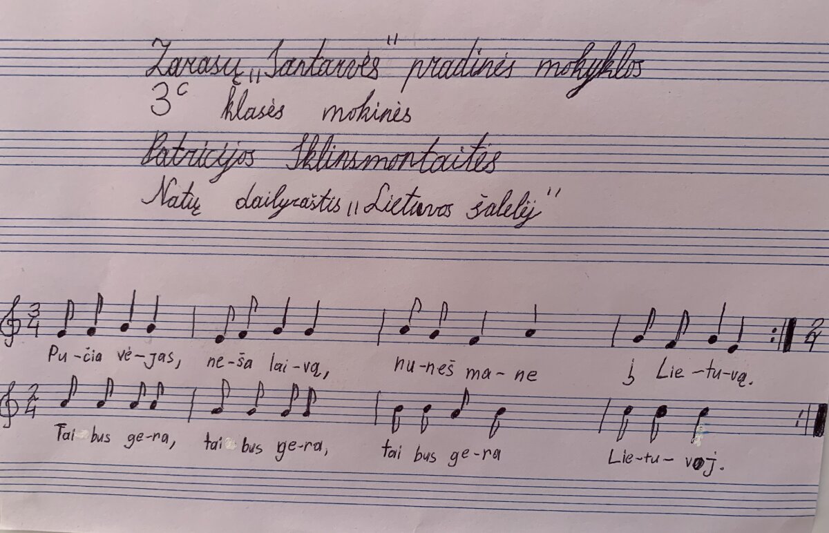 Minint Kovo 11-ąją, mokykloje vyko muzikinė veikla – natų dailyraščio „Lietuvos šalelėj“ rašymas. Joje dalyvavo 3a, 3c ir 4b klasių mokiniai.