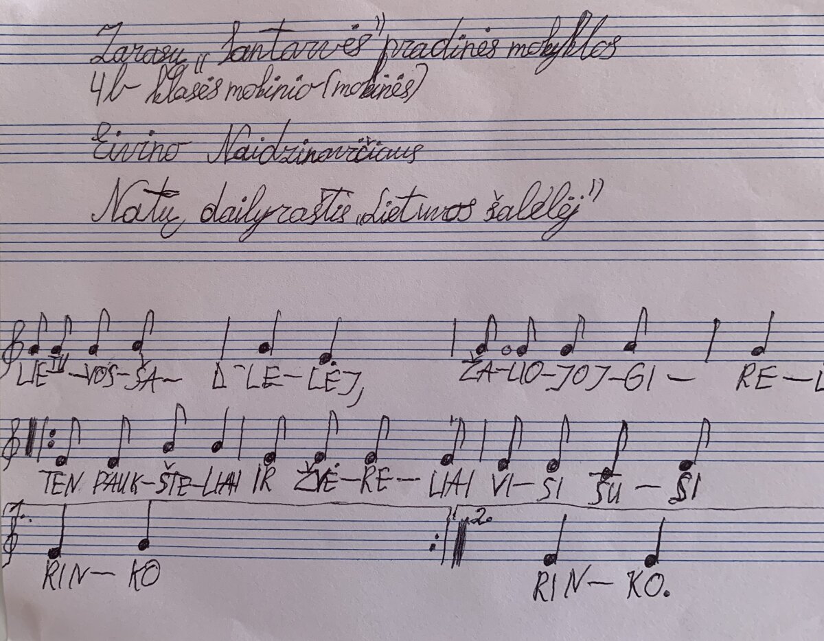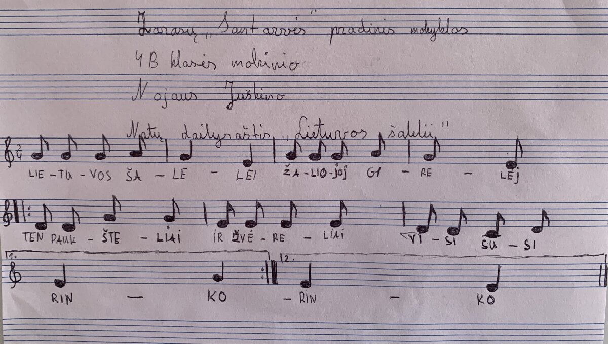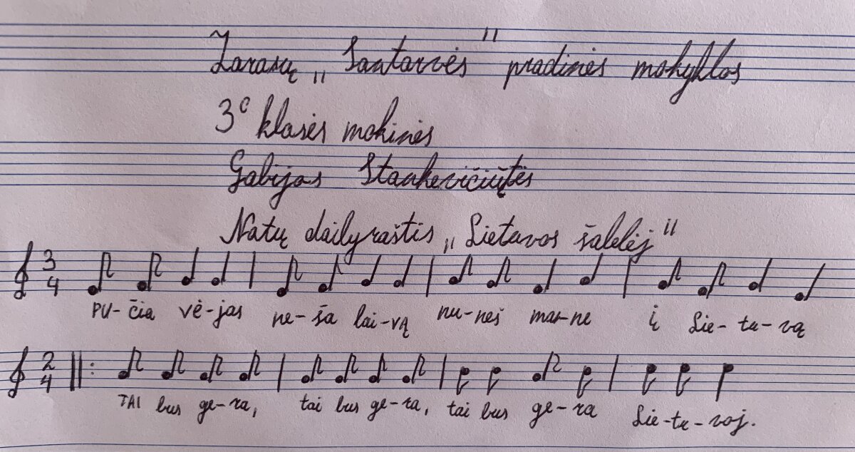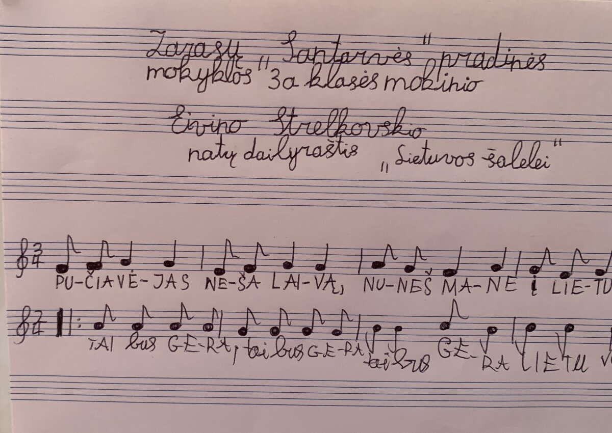 Minint Kovo 11-ąją, mokykloje vyko muzikinė veikla – natų dailyraščio „Lietuvos šalelėj“ rašymas. Joje dalyvavo 3a, 3c ir 4b klasių mokiniai.