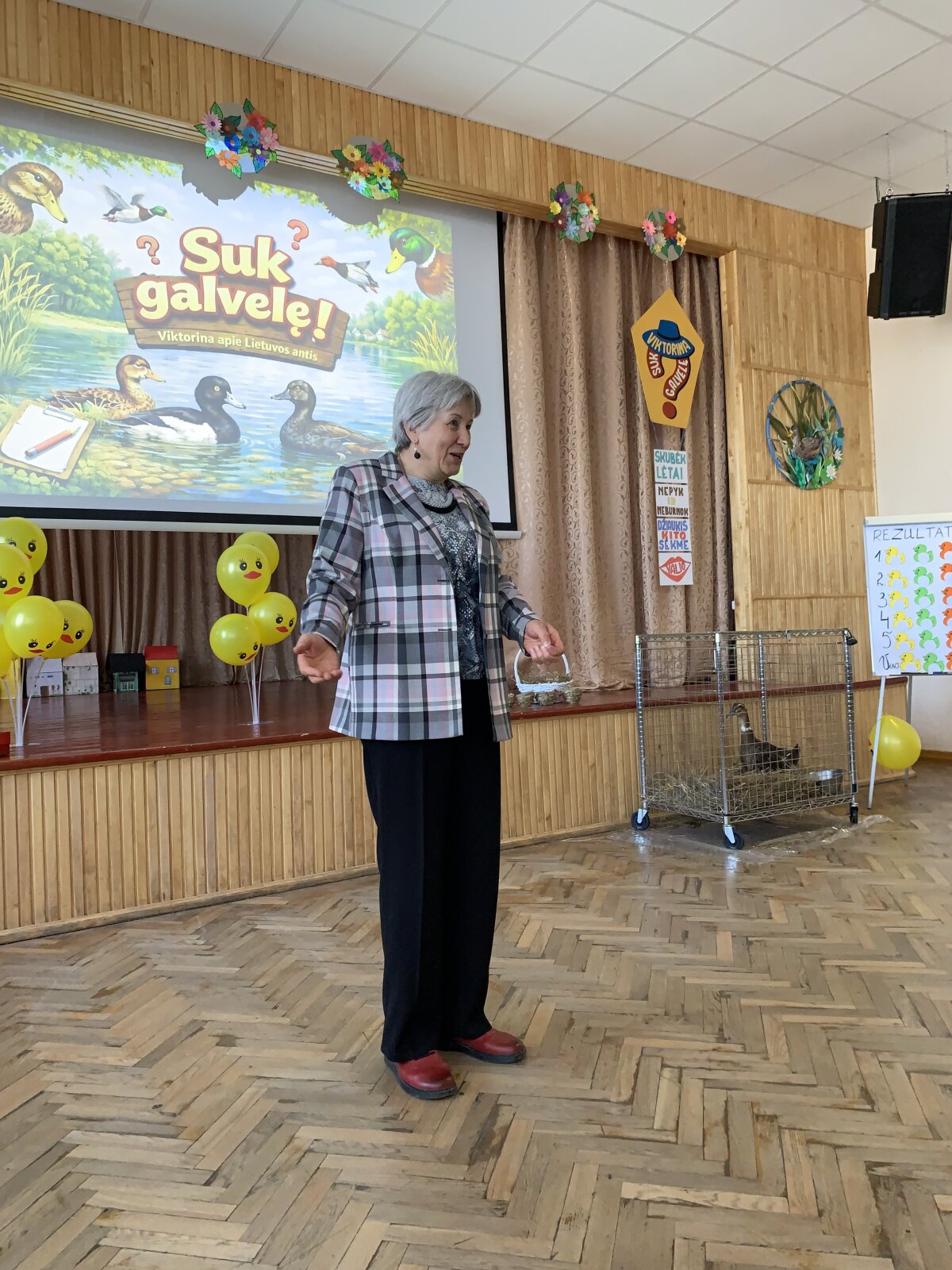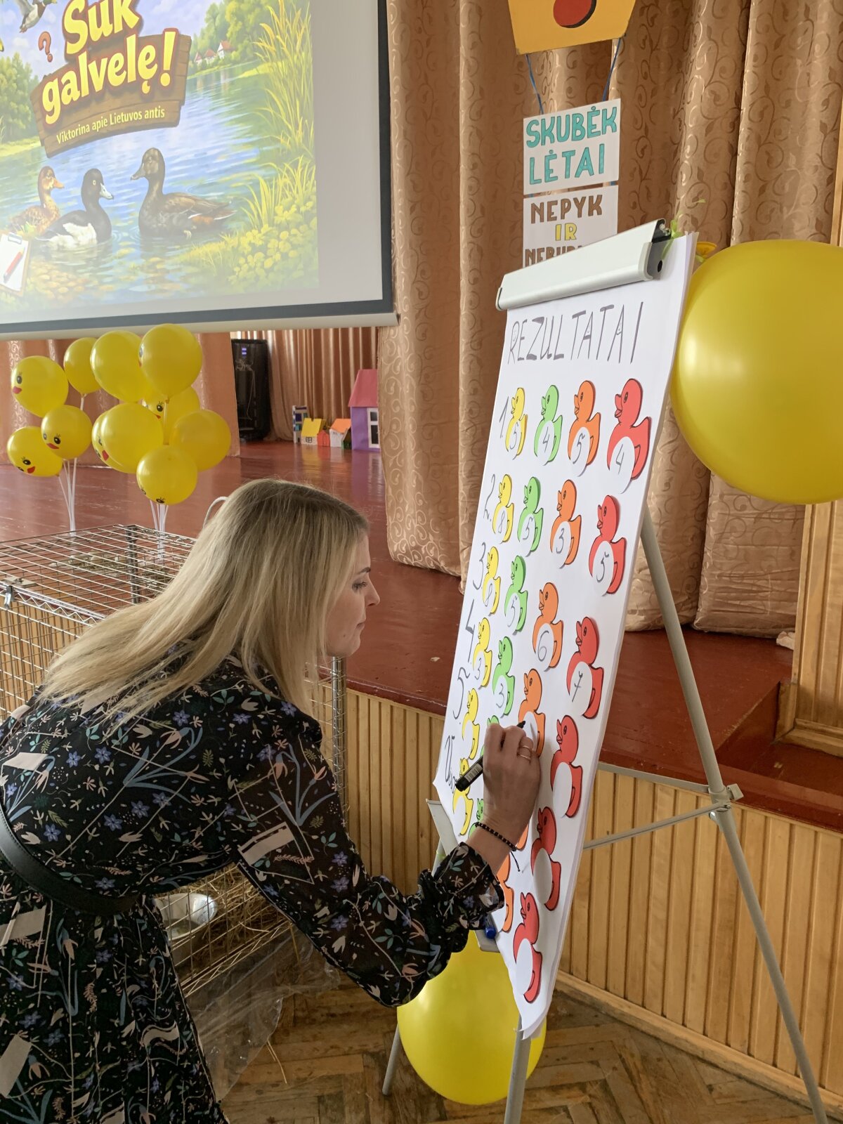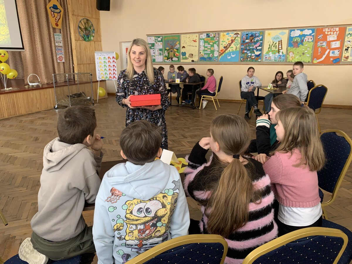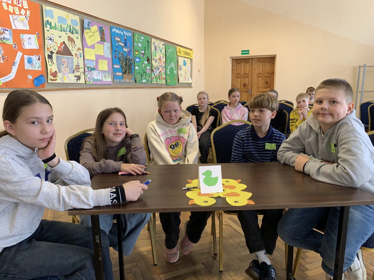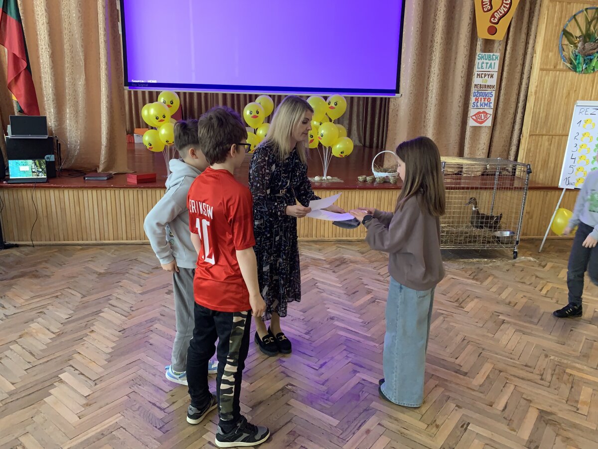 Dar daugiau šypsenų sukėlė ypatingas svečias – tikra naminė antis. Ji tapo vienu įsimintiniausių renginio akcentų. Dėkojame mokytojai Svetlanai Andriuškevičienei, kuri pasirūpino šiuo smagiu siurprizu ir padovanojo vaikams nepamirštamą patirtį. Konkurso pabaigoje paaiškėjo, kad daugiausiai taškų surinko geltonoji komanda, tačiau svarbiausia buvo visai ne tai. Šiandien laimėjo draugystė, gera nuotaika ir smalsumas pažinti mus supantį pasaulį.
